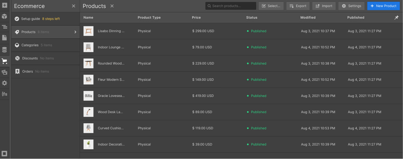 Products or eCommerce content function in a similar way to the CMS dynamic content, however, this is focused exclusively for eCommerce products.
